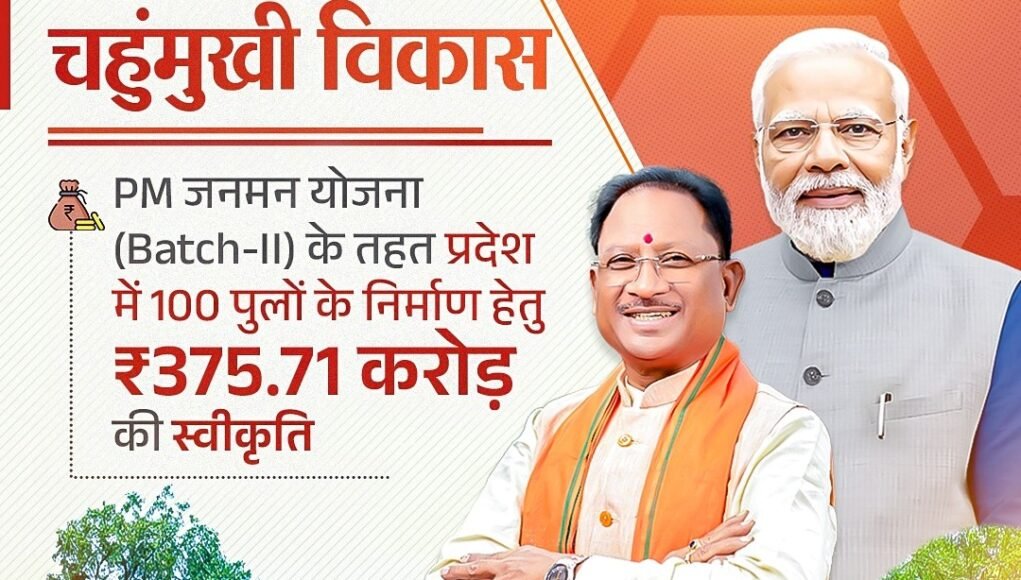 रायपुर। छत्तीसगढ़ को केंद्र सरकार की ओर से दो बड़ी सौगात मिली हैं। प्रधानमंत्री जनमन योजना (PM-JANMAN) के तहत राज्य को 375 करोड़ रुपये से अधिक की लागत से 100 पुलों की स्वीकृति दी गई है। वहीं, नक्सल प्रभावित इलाकों में सड़क संपर्क मजबूत करने के लिए रोड कनेक्टिविटी प्रोजेक्ट (RCPLWEA) के अंतर्गत 195 करोड़ रुपये की सहायता राशि भी स्वीकृत की गई है।