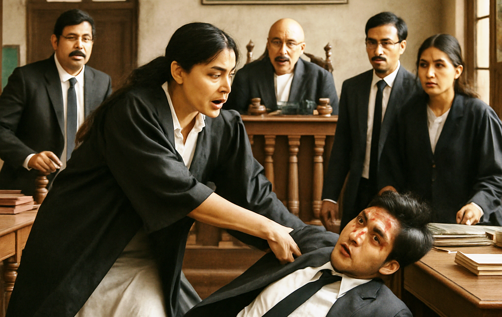 बिलासपुर। फैमिली कोर्ट में सोमवार को पेशी के दौरान पति-पत्नी का विवाद अचानक इतना बढ़ गया कि कोर्ट रूम में ही हंगामा खड़ा हो गया। जज और वकीलों के सामने पत्नी ने पति को थप्पड़ मारकर धक्का दे दिया। धक्का लगते ही पति टेबलों के बीच फर्श पर जा गिरा और उसके सिर में गंभीर चोट लग गई। खून बहने लगा तो कोर्ट रूम में अफरा-तफरी मच गई।