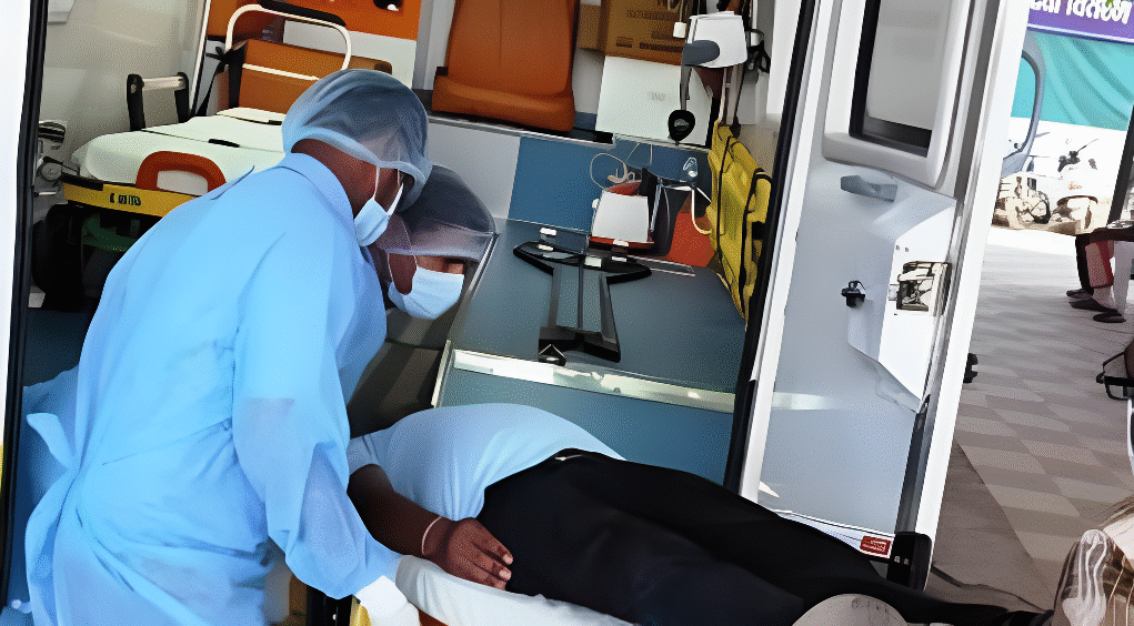 - मरीज को तुरंत स्ट्रेचर पर लिटाकर ऑक्सीजन मास्क लगाया गया,