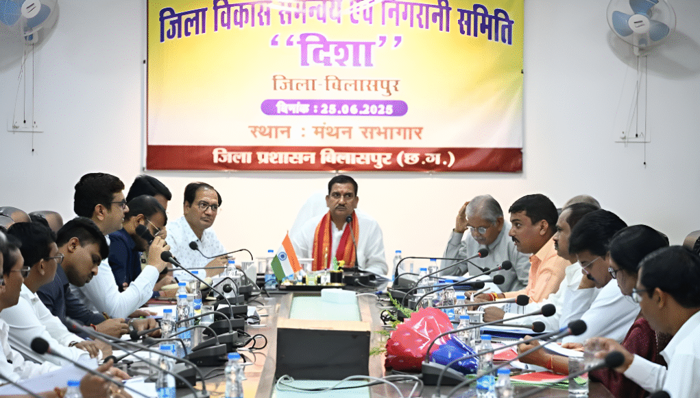 बिलासपुर जिला कार्यालय के मंथन सभाकक्ष में मंगलवार को जिला विकास समन्वय एवं निगरानी समिति (दिशा) की बैठक आयोजित हुई। बैठक की अध्यक्षता केंद्रीय आवास एवं शहरी विकास राज्य मंत्री और बिलासपुर सांसद तोखन साहू ने की। इस दौरान केंद्र और राज्य सरकार की प्रमुख योजनाओं की समीक्षा की गई।