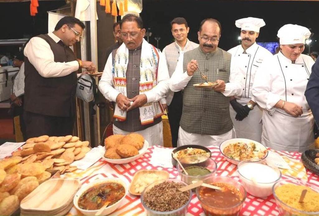 मुख्यमंत्री साय ने इंडियन इंस्टीट्यूट ऑफ होटल मैनेजमेंट, रायपुर की छात्राओं द्वारा तैयार पारंपरिक व्यंजनों का स्वाद लिया। अमारी का शरबत, करील के कबाब, चौसेला रोटी, बफौरी और फरा जैसे पकवानों ने छत्तीसगढ़ की समृद्ध पाक विरासत की झलक पेश की।