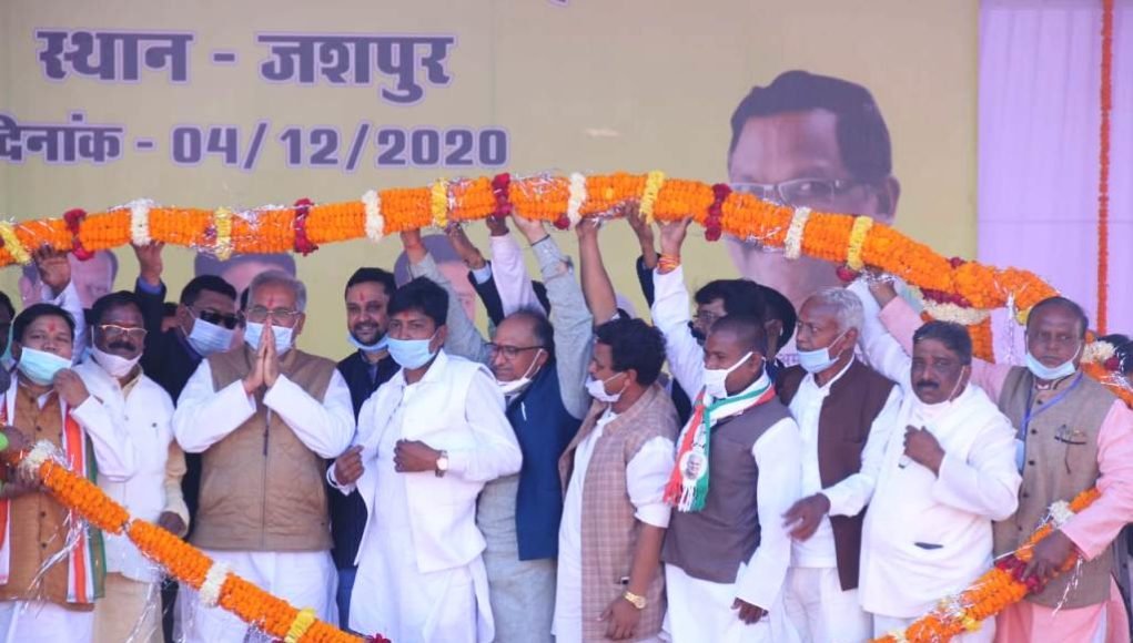रायपुर। मुख्यमंत्री भूपेश बघेल ने आज जशपुर के रणजीता स्टेडियम में आयोजित कार्यक्रम में जिले को 792 करोड़ रुपये 86 लाख रुपये की लागत के 196 विभिन्न विकास कार्यों की सौगात दी। मुख्यमंत्री ने इनमें से 655 करोड़ 77 लाख रुपये की लागत के 94 कार्यों का भूमिपूजन और 137 करोड़ रुपये की लागत के 102 कार्यों का लोकार्पण किया। इस अवसर पर खाद्य मंत्री अमरजीत भगत, उच्च शिक्षा मंत्री उमेश पटेल, मध्य क्षेत्र आदिवासी विकास प्राधिकरण के अध्यक्ष लालजीत सिंह राठिया, अनुसूचित जाति विकास प्राधिकरण की उपाध्यक्ष उत्तरी गनपत जांगड़े, छत्तीसगढ़ खनिज विकास निगम के अध्यक्ष गिरीश देवांगन, विधायक जशपुर विनय भगत, रायगढ विधायक प्रकाश नायक, लैलूंगा विधायक चक्रधर सिदार सहित अनेक जनप्रतिनिधि और बड़ी संख्या में प्रबुद्व नागरिक उपस्थित थे।