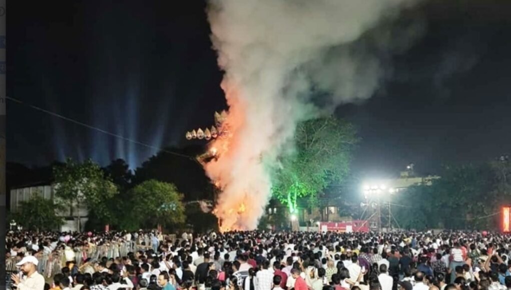 बिलासपुर। नगर पालिक निगम द्वारा पुलिस ग्राउंड में आयोजित सार्वजनिक दशहरा महोत्सव में बुधवार शाम हजारों लोगों की मौजूदगी में 70 फीट ऊँचे रावण का दहन किया गया। इस भव्य आयोजन में मुख्य अतिथि के रूप में पहुंचे विधायक अमर अग्रवाल ने पूजा-अर्चना कर कार्यक्रम की शुरुआत की और रावण का दहन किया। आतिशबाजी के रंग-बिरंगे नज़ारे ने पूरे मैदान को सतरंगी रोशनी से भर दिया।
