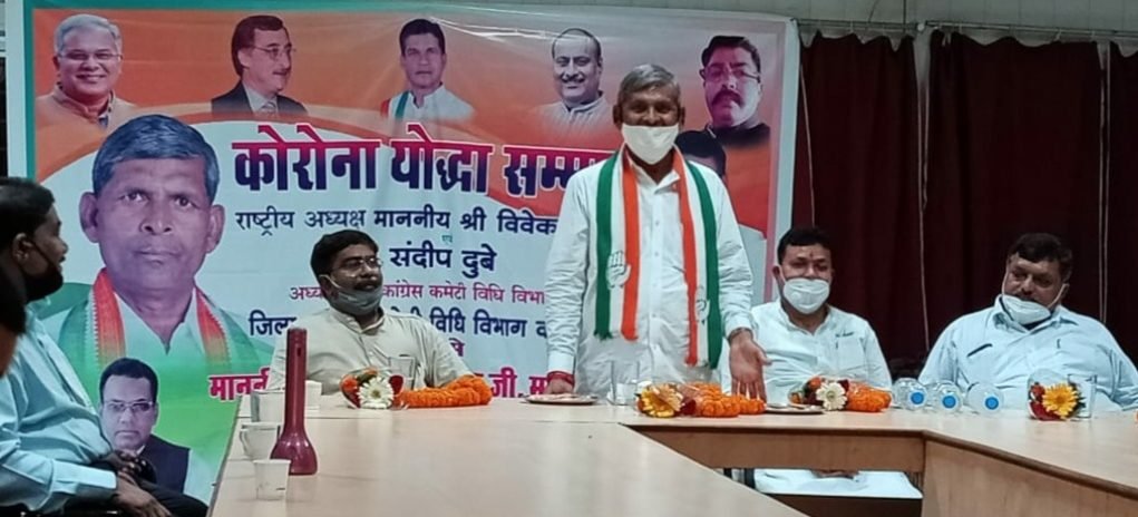 कांग्रेस विधि विभाग द्वारा प्रत्येक जिले में कोरोना योद्धा सम्मान कार्यक्रम किया जा रहा है। इसी कड़ी में कोरबा में भी कार्यक्रम रखा गया। प्रदेश विधि कांग्रेस के अध्यक्ष संदीप दुबे ने महापौर व सभापति का स्वागत करते हुए उनको स्मृति चिन्ह भेंट किया। यह सम्मान उन्हें कोरोना संक्रमण काल में उत्कृष्ट भूमिका रखने तथा विधि विभाग संगठन को मजबूती प्रदान करने के लिये दिया गया। महापौर व सभापति ने अपने सम्बोधन में इस सम्मान के लिये आभार माना। पार्षद तथा अधिवक्ता सुरेन्द्र जायसवाल ने भी अपने विचार रखे।