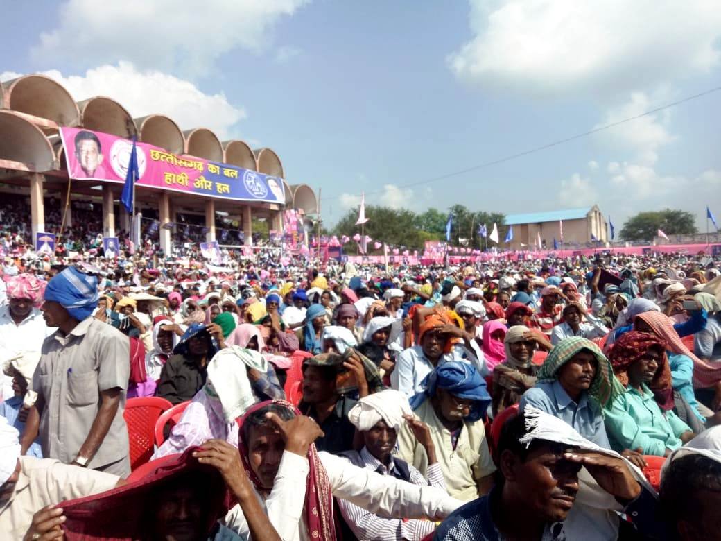 कार्यक्रम के लिए सरकंडा खेल परिसर मैदान छोटा पड़ गया। भीड़ इतनी अधिक थी कि कार्यक्रम स्थल तो पूरा भरा रहा साथ ही जगह ना मिलने की वजह से जोगी और मायावती को सुनने आए लोगों को बाहर ही रुकना पड़ा। कुछ लोगों दीवारों में छतों में चढ़कर कार्यक्रम को देख रहे थे तो हजारों की संख्या में लोग बाहर तेज धूप में सड़क पर खड़े होकर या इधर उधर बैठकर जोगी और मायावती जी को सुन रहे थे। अनुमान लगाया जा रहा है कि दोनों नेताओं को सुनने करीब एक लाख लोग पहुंचे थे।