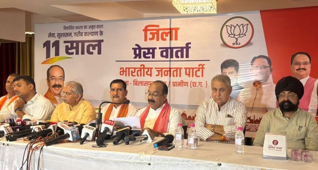 बिलासपुर। प्रधानमंत्री नरेंद्र मोदी के नेतृत्व में केंद्र सरकार के 11 साल पूरे होने के मौके पर बुधवार को बिलासपुर में भारतीय जनता पार्टी की प्रेस कॉन्फ्रेंस हुई। कार्यक्रम में उपमुख्यमंत्री अरुण साव ने मीडिया से बातचीत करते हुए कहा कि ये ग्यारह साल सिर्फ सत्ता का नहीं, सेवा, सुशासन और गरीब कल्याण के अभियान का दौर रहा है। उन्होंने कहा कि मोदी सरकार ने भारत को सिर्फ बदलने का काम नहीं किया, बल्कि उसे दुनिया में सम्मान दिलाने का कार्य भी किया है।