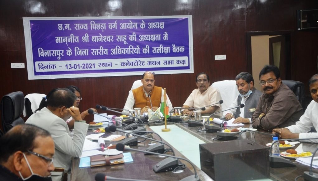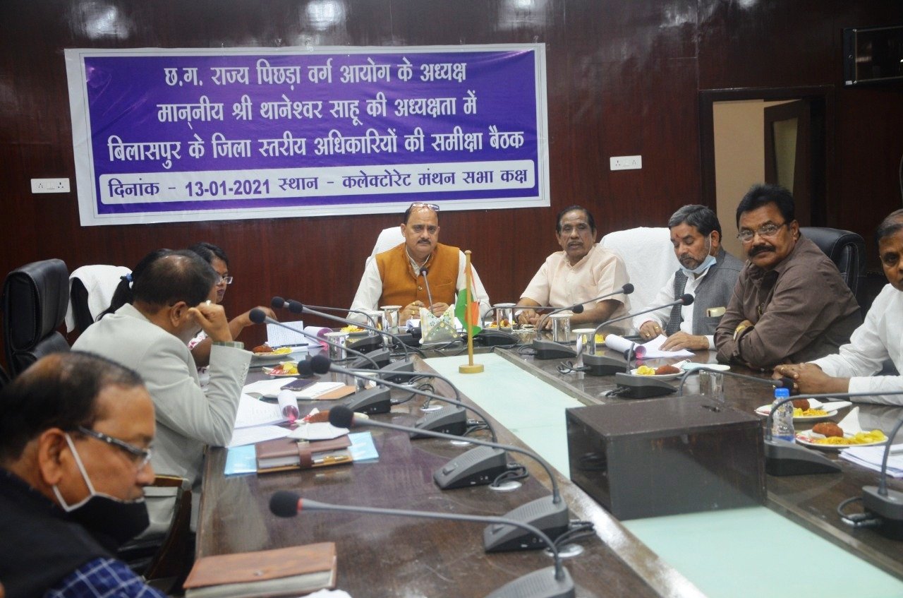 बिलासपुर। पिछड़ा वर्ग आयोग के अध्यक्ष थानेश्वर साहू ने आज कलेक्टोरेट में अधिकारियों की बैठक लेकर पिछड़ा वर्ग से सम्बन्धित योजना योजनाओं की विस्तार से समीक्षा की। उन्होंने पिछड़ा वर्ग के लिये शासन की लागू योजनाओं के व्यापक प्रचार का निर्देश दिया। सहायक श्रम आयुक्त को उन्होंने जिले में पिछड़ा वर्ग के लिये छात्रावास खोलने सम्बन्धी प्रस्ताव बनाने के लिये कहा। साथ ही अधिकारियों को निर्देश दिया कि आय व जाति प्रमाण पत्र के लिये किसी को भटकना न पड़े। उद्योग विभाग के अधिकारियों को उन्होंने मुख्यमंत्री स्व रोजगार योजना एवं प्रधानमंत्री रोजगार सृजन योजना का अधिकाधिक लाभ दिलाने के लिये कहा। इसके लिये बैंकर्स के साथ बैठक भी करने के लिये उन्होंने कहा है। उन्होंने सिविल सेवा प्रोत्साहन योजना का भी प्रचार-प्रसार करने कहा ताकि प्रतियोगी छात्रों को इसका लाभ मिल सके। राशन कार्ड, श्रमिकों के पंजीयन, समाज कल्याण विभाग, महिला एवं बाल विकास विभाग से जुड़ी योजनाओं के सम्बन्ध में भी उन्होंने समीक्षा करते हुए कार्यान्वयन में तेजी लाने पर जोर दिया।