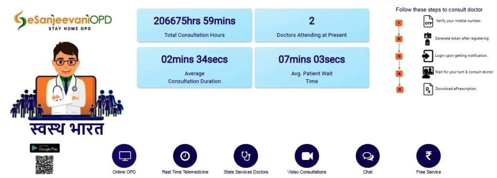 आप गूगल क्रोम (Google Chrome) या प्ले स्टोर के माध्यम से (Https://www.eSanjeevaniopd.in या https://play.google.com/store/apps/details?id=in.hied.esanjeevaniopd)