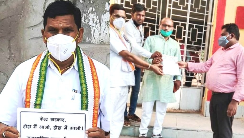 मुंगेली। केंद्र सरकार के द्वारा रासायनिक खाद एवं अन्य वस्तुओं मे बेतहाशा वृद्धि के विरोध मे जिला कांग्रेस कमेटी अजा विभाग के जिलाध्यक्ष रेखचंद कोशले ने अपने घर के सामने धरना दिया। शाम 4.30 बजे उन्होंने राष्ट्रपति के नाम पर कलेक्टर मुंगेली के माध्यम से अनुविभागीय अधिकारी (राजस्व) को ज्ञापन सौंपा। इस दौरान अजा विभाग कांग्रेस के प्रदेश सचिव अशोक सोनवानी हेमंत काठले, सुनील लहरे एवं कांग्रेस के अन्य कार्यकर्ता उपस्थित थे। उक्त धरना प्रदेश कांग्रेस अध्यक्ष मोहन मरकाम, अंत्यवसायी निगम अध्यक्ष धनेश पाटिला व जिला कांग्रेस अध्यक्ष सागर सिंह बैस के निर्देश पर दिया गया।