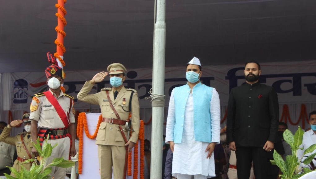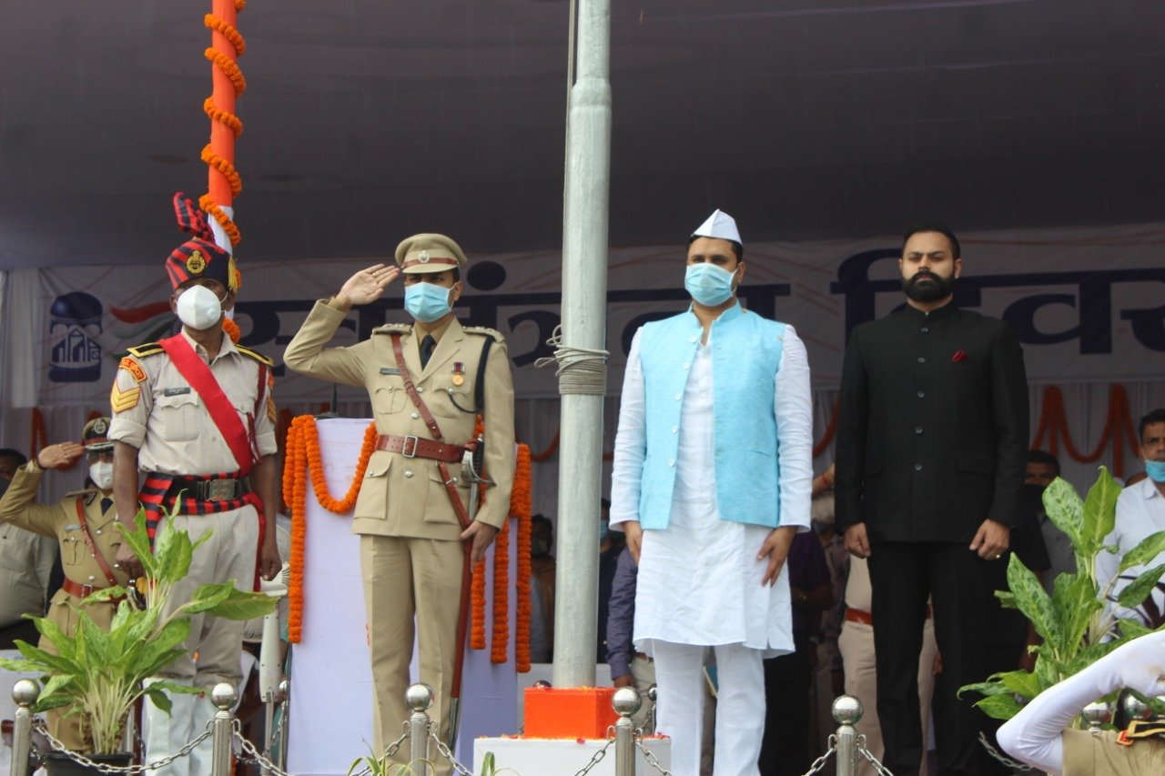 बिलासपुर । पुलिस ग्राउन्ड में प्रदेश के उच्च-शिक्षा मंत्री उमेश पटेल ने आजादी के 74वीं वर्षगांठ पर ध्वजारोहण किया। जिले में जगह-जगह हर्षोल्लास के साथ आजादी की वर्षगांठ मनाई गई।