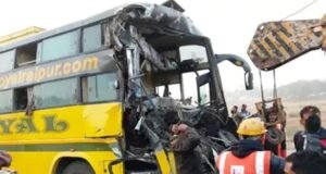 कोहरे में खड़े ट्रेलर से टकराई यात्री बस, 16 घायल, पांच की हालत गंभीर, बस चालक के दोनों पैर फ्रैक्चर