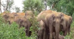 कटघोरा वनमंडल में 52 हाथियों का झुंड मौजूद, शावकों संग आराम...