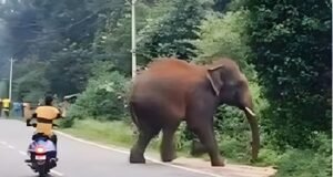 सड़क पार करते हाथी को स्कूटी सवार ने दौड़ाया, इधर हाथी...