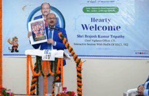 दो दिवसीय दौरे पर एसईसीएल पहुंचे, सतर्कता पर दिया प्रेरक व्याख्यान बिलासपुर। कोल इंडिया लिमिटेड के मुख्य सतर्कता अधिकारी (CVO) ब्रजेश कुमार त्रिपाठी अपने दो...