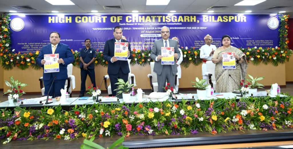 बिलासपुर। छत्तीसगढ़ हाईकोर्ट की स्पेशल सेल फॉर पोक्सो कमेटी और जुवेनाइल जस्टिस कमेटी ने छत्तीसगढ़ राज्य न्यायिक अकादमी और राज्य विधिक सेवा प्राधिकरण के सहयोग से “बालिका संरक्षण : भारत में उसके लिए सुरक्षित और सक्षम वातावरण” विषय पर राज्य स्तरीय विचार–परामर्श का आयोजन किया। कार्यक्रम का शुभारंभ छत्तीसगढ़ हाईकोर्ट के मुख्य न्यायाधीश न्यायमूर्ति रमेश सिन्हा ने किया। इस मौके पर न्यायमूर्ति संजय के. अग्रवाल, न्यायमूर्ति रजनी दुबे और न्यायमूर्ति नरेश कुमार चंद्रवंशी विशेष अतिथि रहे।