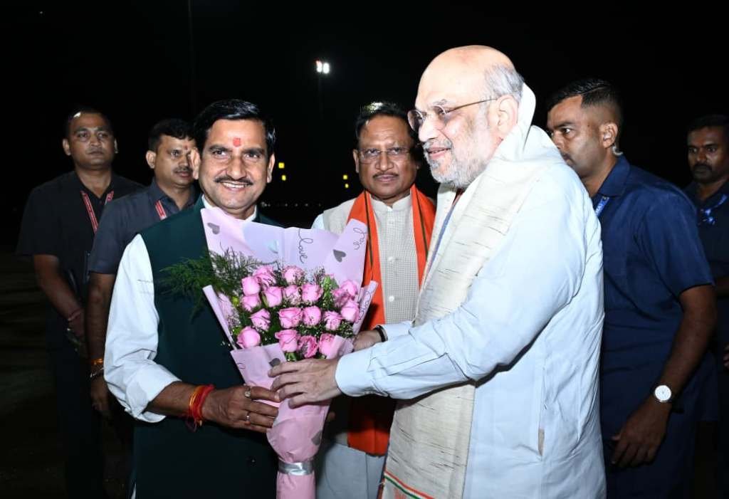 रायपुर। केंद्रीय गृह मंत्री अमित शाह शुक्रवार की रात छत्तीसगढ़ के दो दिवसीय प्रवास पर राजधानी रायपुर पहुंचे। मुख्यमंत्री विष्णु देव साय ने स्वामी विवेकानंद विमानतल पर पुष्पगुच्छ भेंट कर उनका आत्मीय स्वागत किया।