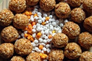 Across India, Makar Sankranti is celebrated with various food festivals and feasts. In Maharashtra, laddoos made from sesame seeds and jaggery are made. In Assam, rice cakes stuffed with coconut and jaggery are made. Many regions make khichdi and offer it to the gods before feasting on it.